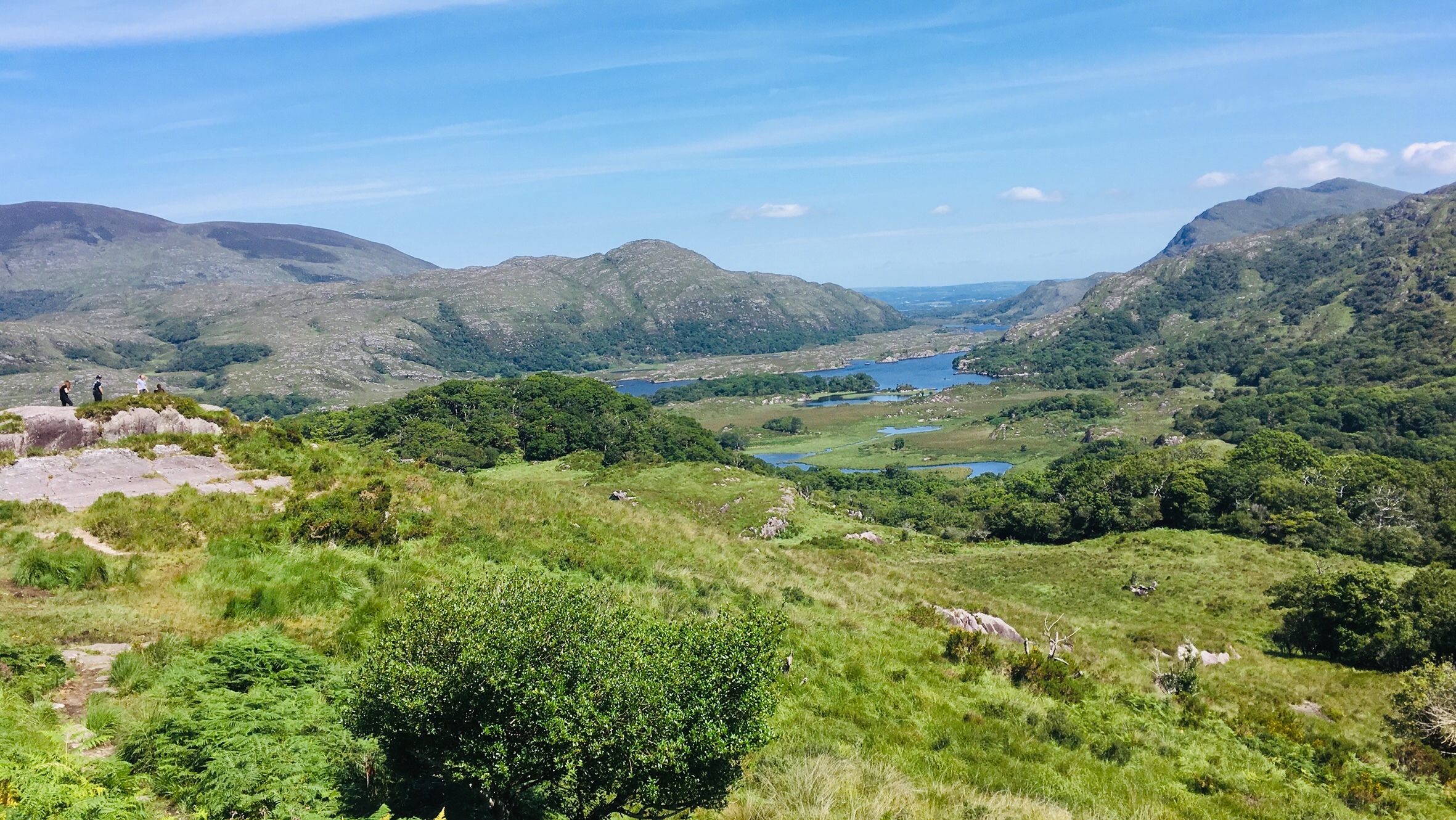 - Ladies View is a WOW stop. I fell in love with this spot. I love to see how Ireland’s scenery various in different places and different counties and it is this view that I remember the most from my time in Kerry. This is another point on the Ring of Kerry and it does not disappoint. The sun was shining down, there were clear, blue skies and it was very quiet along here. After taking some photos and walking around, we headed into a very convenient shop that was located here called ‘Ladies View Industries‘. It is a small gift shop full of Irish merchandise and what really topped it off for me was the open top terrace above the cafe! Enjoy a coffee or a bite to eat here while looking down on the the lakes and mountains!