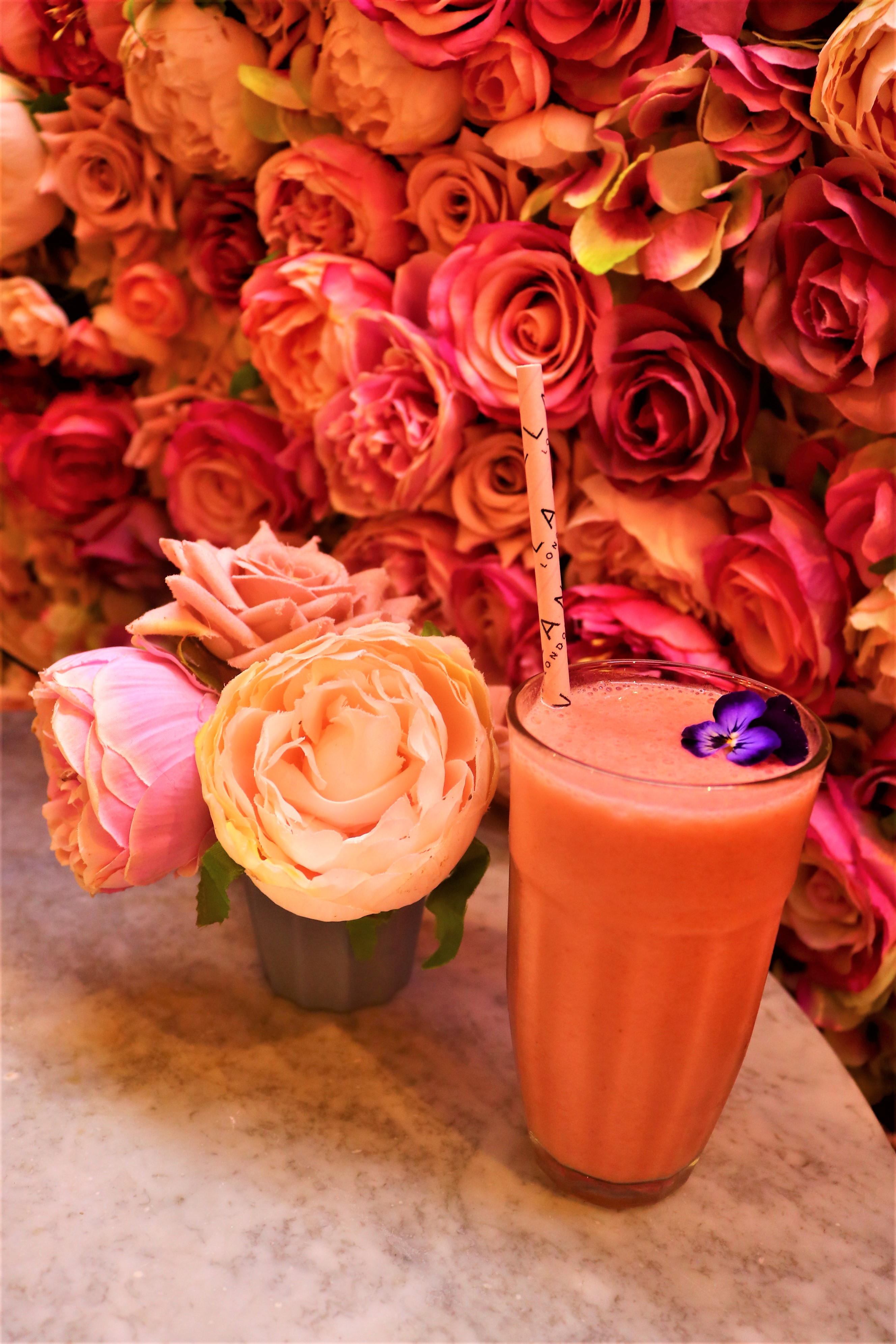 Elan Cafe: Mayfair: I had wanted to visit here since I first saw it pop up on my Instagram account, the perfectly pink, girly cafe! Again there was a queue to get into the cafe but you were not waiting too long. Once we were directed inside and downstairs my first reaction was it is a lot smaller than I thought but the wall of pink flowers and fluorescent lights take away from this. Make sure you sit downstairs as there are no flower walls upstairs. Worth visiting even just for a coffee and smoothie like what we did.