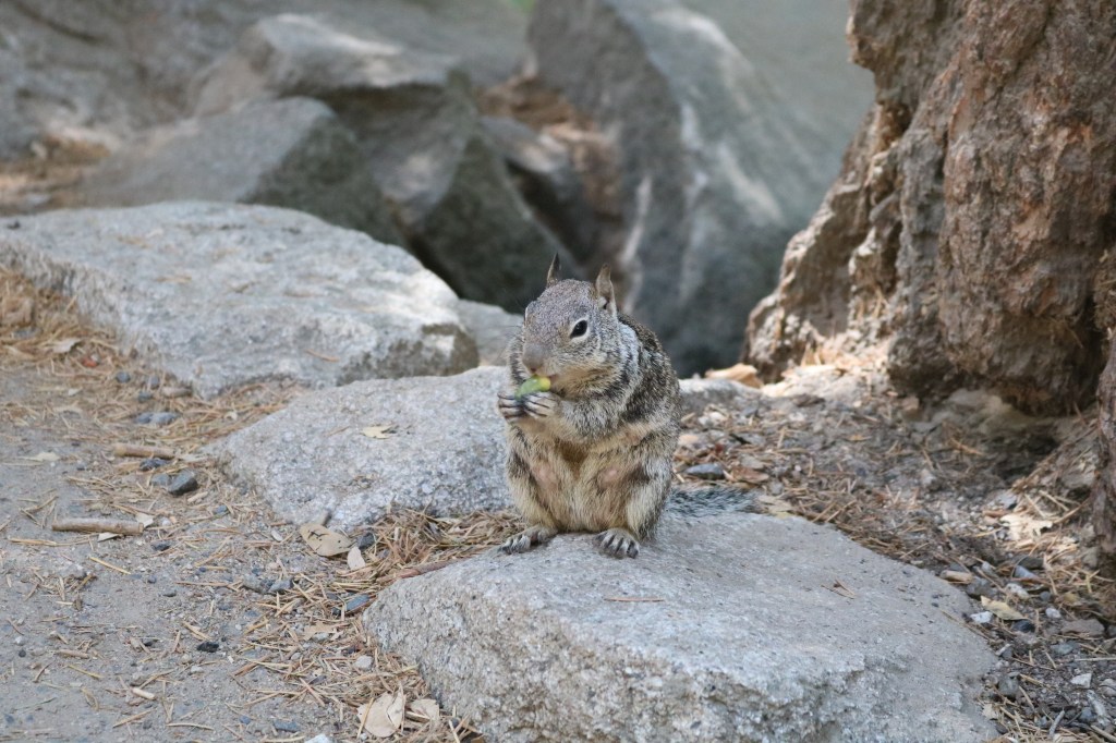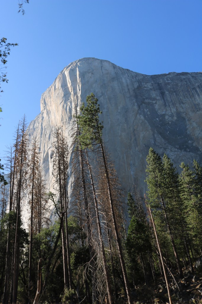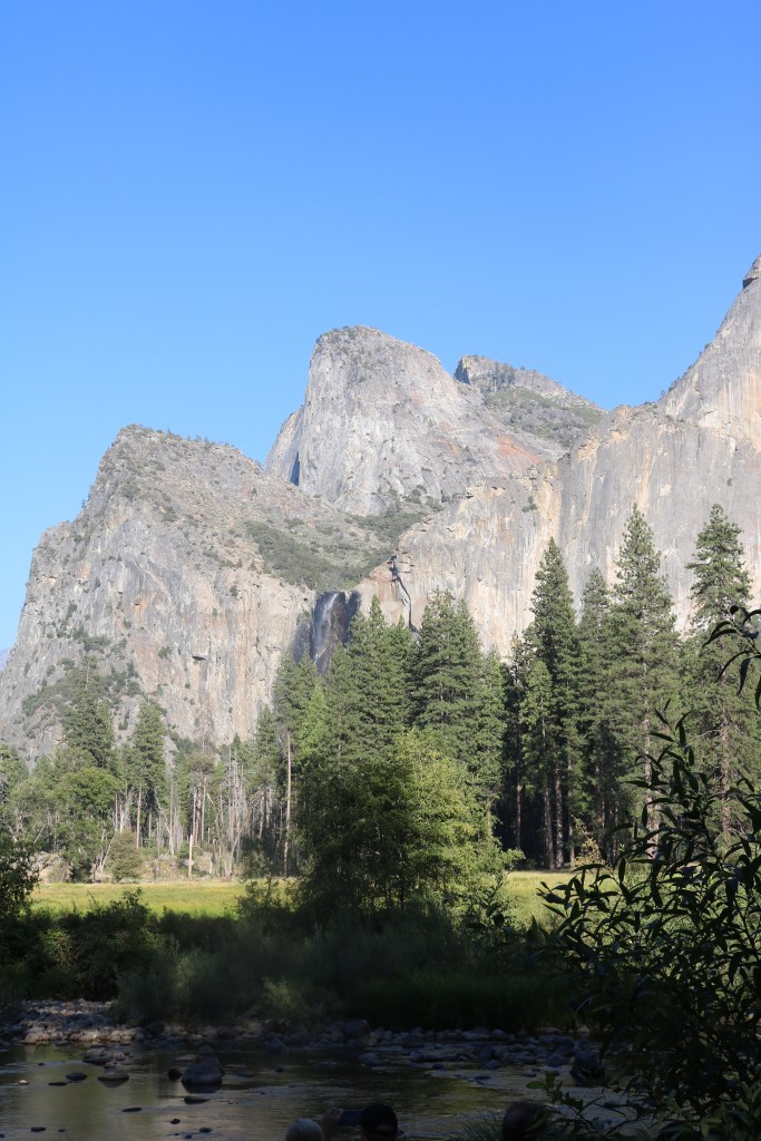 Bridalveil Fall; Once of Yosemite’s Waterfalls was first up on our agenda. It was the last week in August we visited and the weather was great, very hot during the day and cool at night! Bridalveil Fall is relatively easy to get to and the park is very well sign posted. Although I would say make sure you have good shoes for walking & hiking as the rock is majorly Granite which smooth and slippery (especially when you have sketcher runners on like I did, not my best idea). With the heat and the recent devasting Ferguson Fires the waterfalls were very light falling. Bridalveil Fall was very wispy and high, which gave an appearance that the water was flowing from the sky. Signs of the Ferguson Fires were evident as we walked by. Anyway after some rock climbing, we grabbed some lunch in the CafĂ©, where you had many onlooking squirrels ready to clean up if you left anything behind. Be sure to clean as you go and use the appropriate bins which it vital to keep the ears and other wildlife at bay. There are signs everywhere about this.