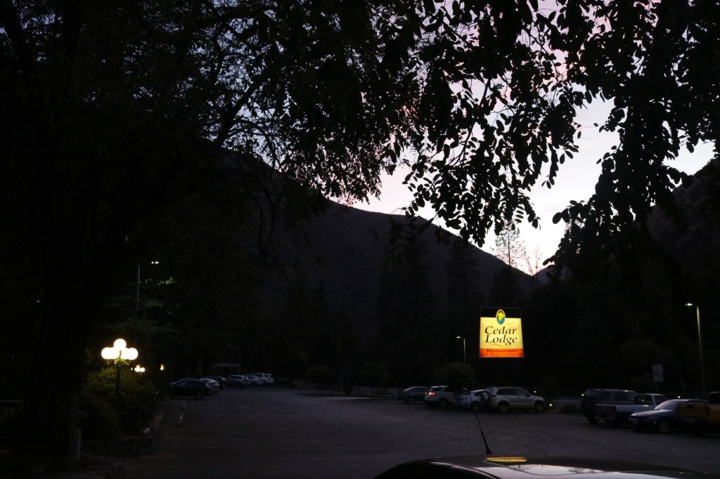 At night, as we pulled in it was like taking a step back in time and is just like the image of real American countryside. There was a very old style reception with a miniature grocery shop to the side of it with your few essentials, a bar, lounge, indoor & outdoor pool and a restaurant. I guess there were no major facilities in proximity to this accommodation so they had it all. This might be an issue for some people but there is NO WIFI or PHONE SERVICE at Cedar Lodge. Now, I am sure you can maybe pay to for use of computer in reception but this would cost you. We each called home on the really old style phone, like the circular manual dialling ones and let them no that we arrived and we would speak to them once we finished our stay in Yosemite. I remember that this call alone was expensive. The bedroom are very old fashioned but it was perfect for what we needed. It was a buffet style breakfast and it was very nice and dinner in the restaurant was standard too and it was very budget friendly for the 3 days/3 nights we spent here. Perfect for what we needed!